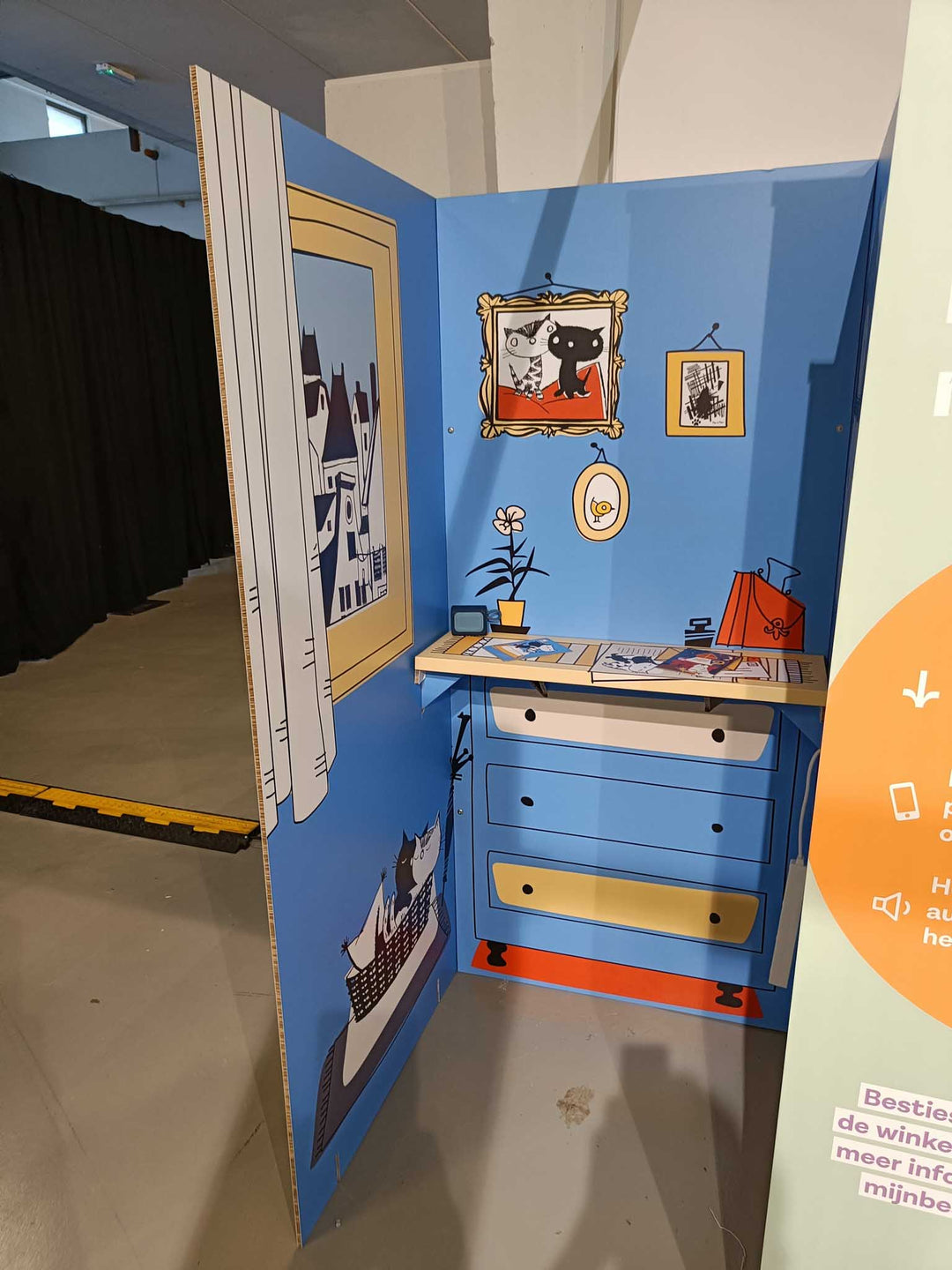 Voor Besties hebben we twee "Experience Boxes" gemaakt. In beide cabines is een tafeltje verwerkt waar luister apparatuur op geplaatst kon worden. Wij hebben de snijtekening gemaakt maar Besties het fantastische artwork.
