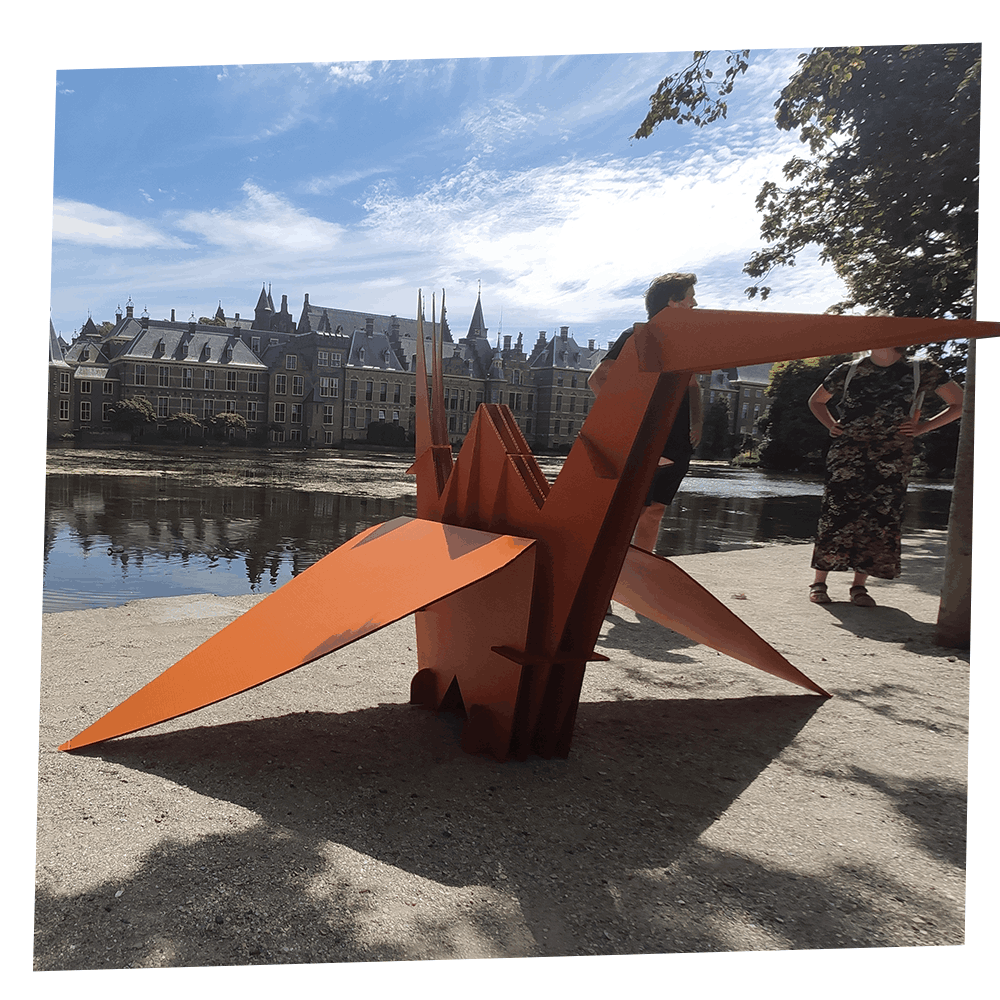 Voor de herdenking van de bombardementen in Hiroshima worden in Japan vele miljoenen kraanvogels gevouwen. In Nederland wilde Vredesbeweging PAX hiervoor een levensgrote kraanvogel in het oranje. Deze hebben we met veel plezier ontworpen!