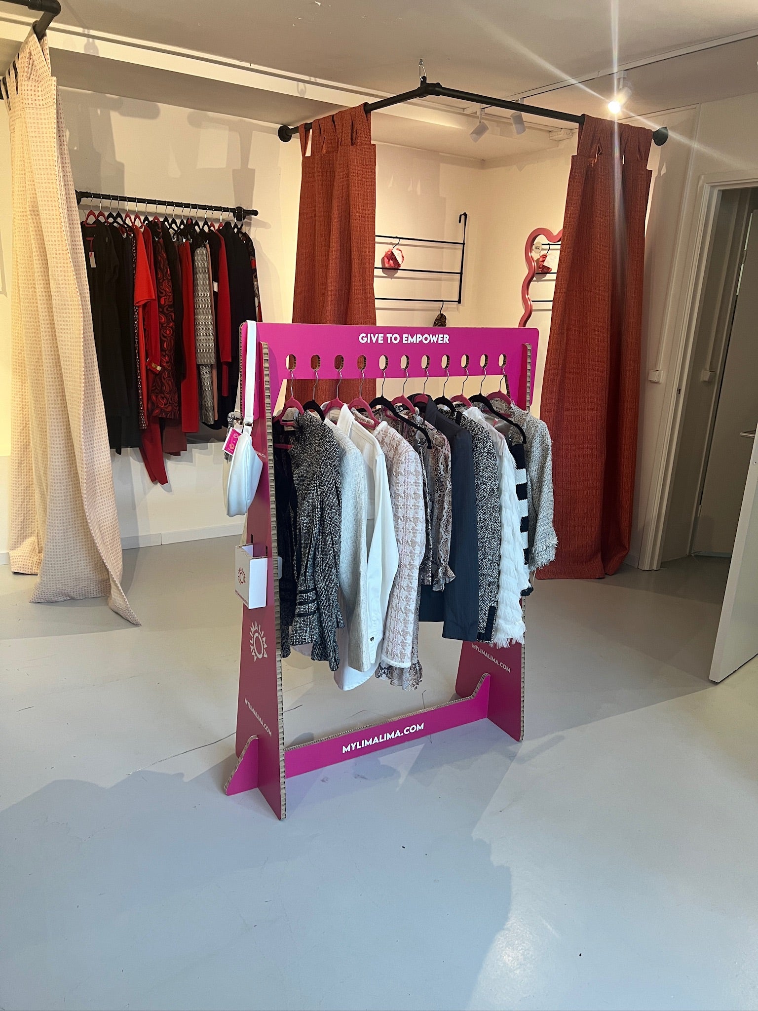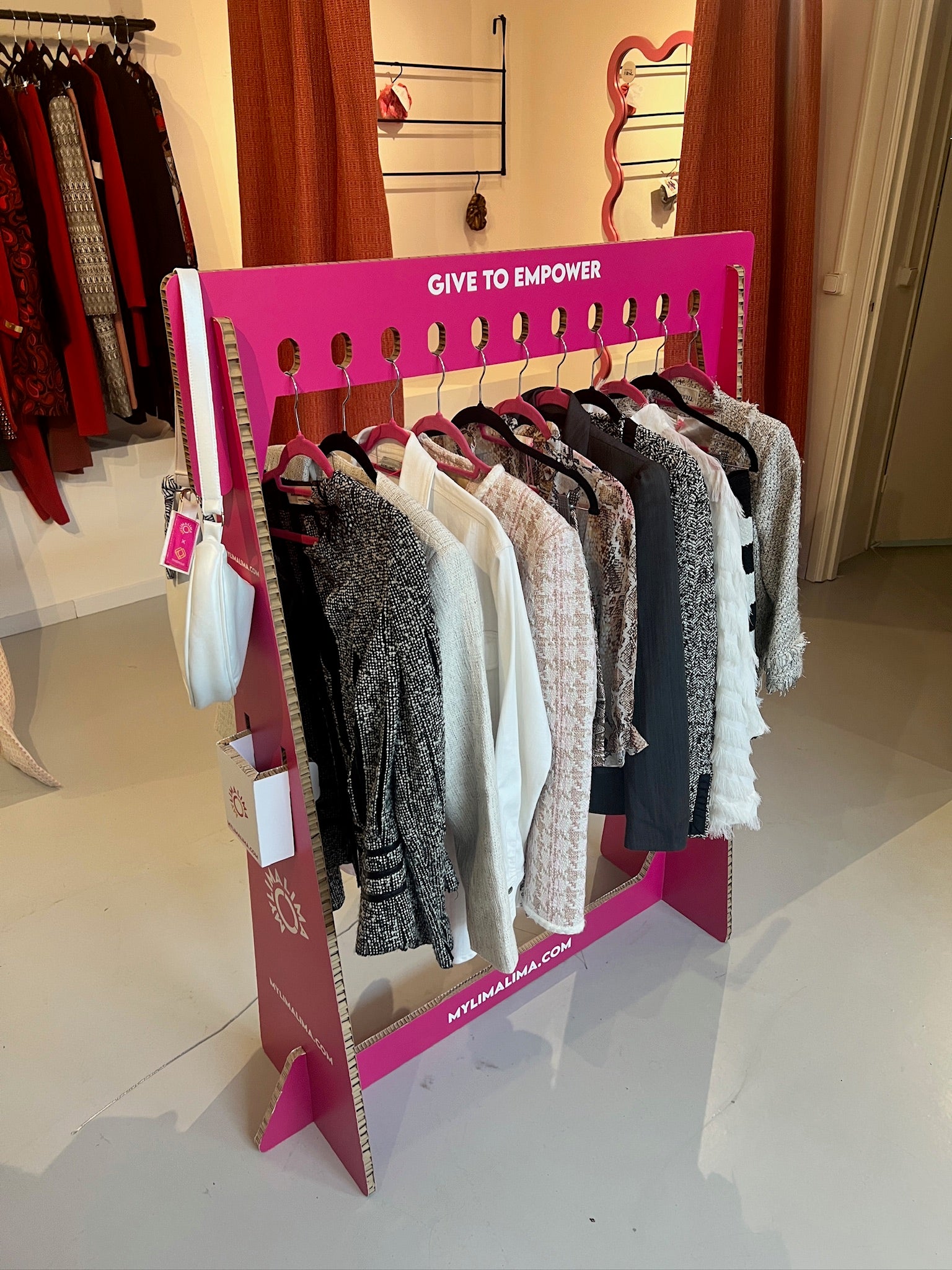Een bedrukt kledingrek, dit is perfect voor jouw (pop-up) winkel, op kantoor of op een beurs. Het kledingrek is gemaakt van honingraat karton en kan helemaal bedrukt worden! Je kan 11 kledingstukken aan het rek hangen. Na akkoord, 7 werkdagen levertijd.