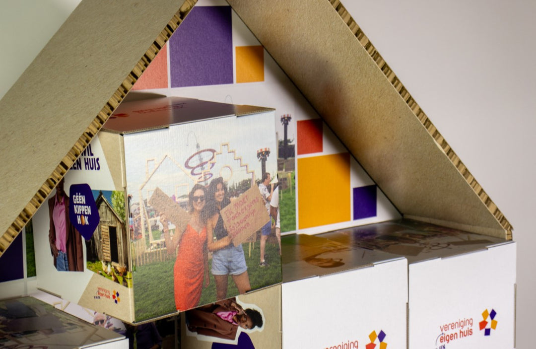 Für das BKB-Kampagnenbüro haben wir ein riesiges Haus mit mehreren schwebenden Würfeln geschaffen. Diese wurden durch Magnete in der Schwebe gehalten und konnten so in jede gewünschte Richtung ausgerichtet werden.