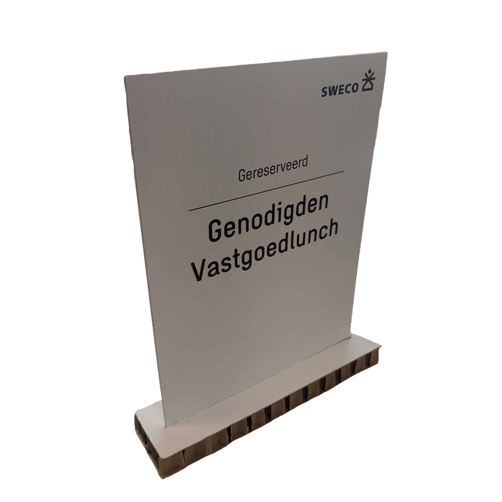 Unsere Kartenhalter aus Karton verleihen Ihrer Veranstaltung einen Hauch von Grün. Präsentieren Sie sie mit Ihrer eigenen Karte oder einer unserer bedruckten Karten auf dem Tisch. Der Kartenhalter aus Karton ermöglicht es Ihnen, Informationen beidseitig mit Ihren Kunden zu teilen. Er ist für Karten im Format A5 ausgelegt.