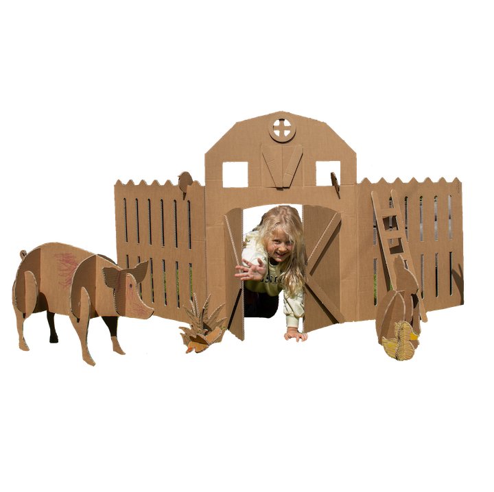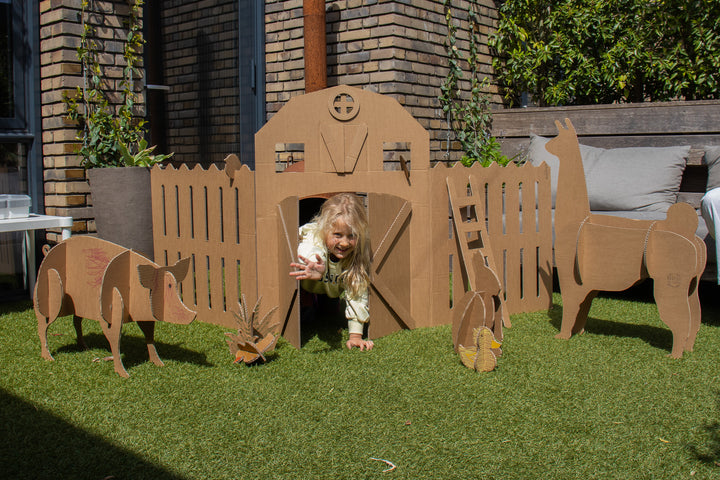 Willkommen auf der Kartonfarm! Das perfekte Spielzeug für den zukünftigen Landwirt! Mit dieser Bauernhofwand aus Pappe können Sie im Handumdrehen Ihre eigene Miniaturfarm bauen. Platzieren Sie die Pappenten neben dem Pappgras und lassen Sie die Pappvögel fröhlich umherflattern. Die Farm lässt sich leicht aufbauen und lagern. Mit etwas Farbe, Glitzer, Markern oder Kreide kann der Bauernhof völlig individuell gestaltet werden.