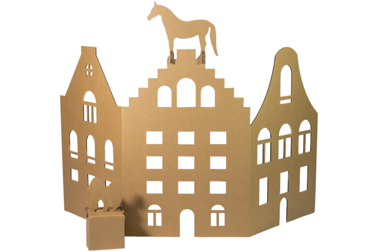 Kartonnen grachtenpand speelwand – Sinterklaas-editie