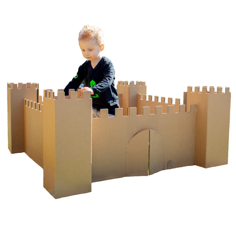 Nachhaltiges Spielen war noch nie so einfach. Eine riesige Spielburg aus Pappe für Sie und Ihren Ritter! Das Schloss ist 108 x 108 x 56 cm groß. Verteidige die Pappfestung und behalte dein Spielzeug drinnen, das gefällt Mama ;)