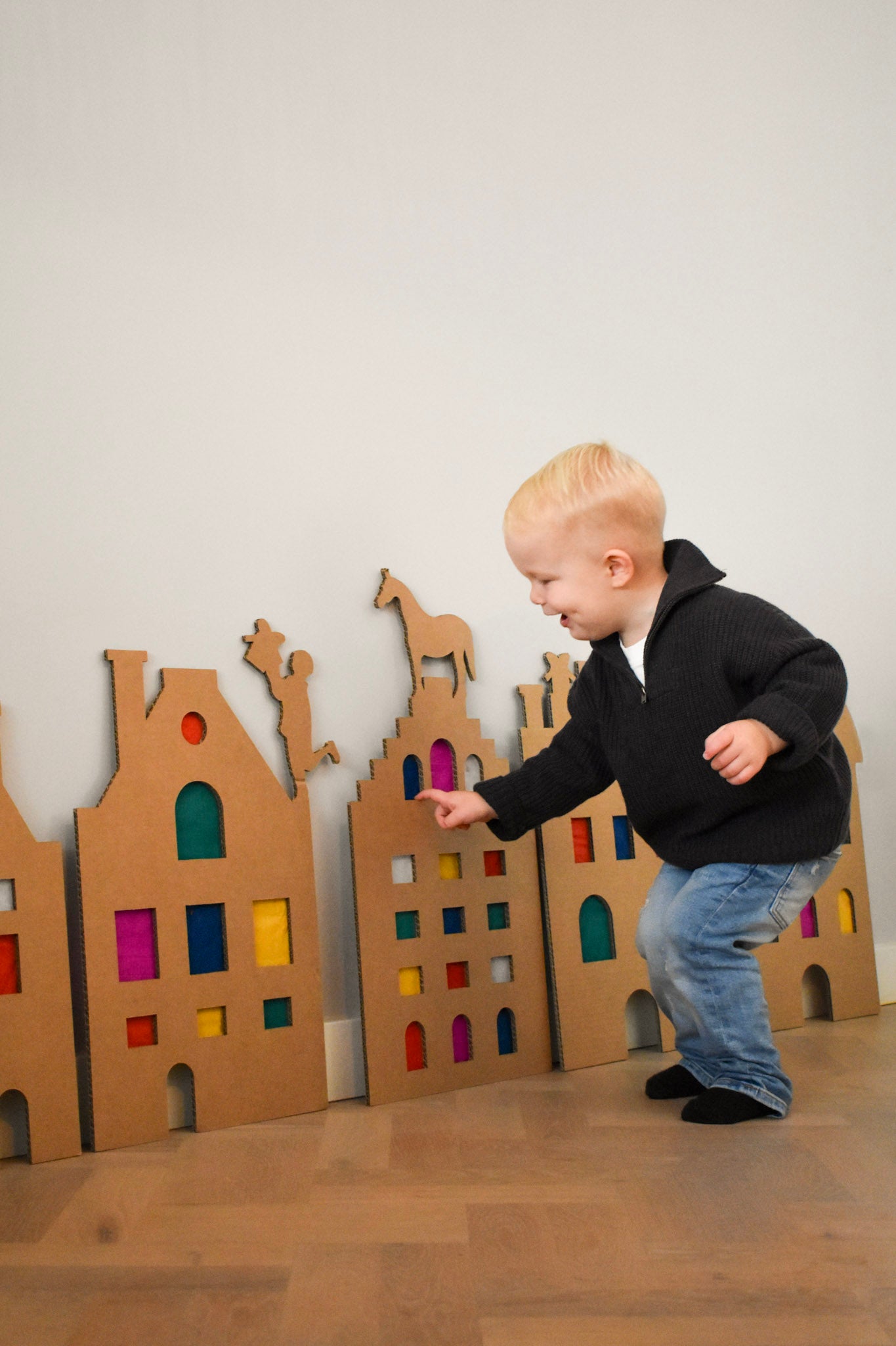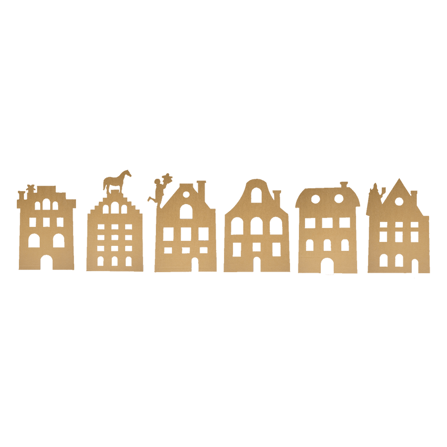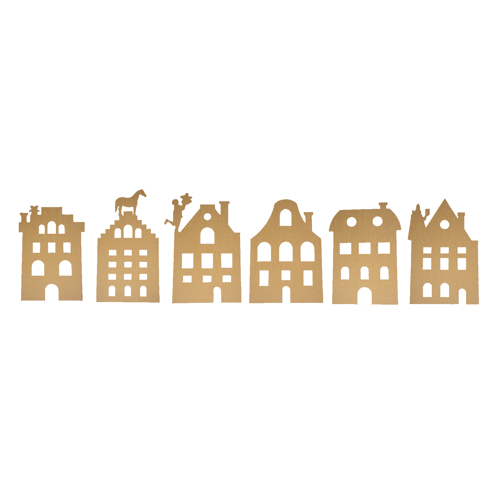 Breng de Sinterklaassfeer tot leven bij jou thuis met deze vrolijke kartonnen raamversiering! De set bestaat uit zes gezellige grachtenpandjes met raampjes en op sommige daken zie je Sinterklaas, een pietje of een paardje staan. Hang ze voor het raam, zo kan je er van binnen en buiten van genieten.