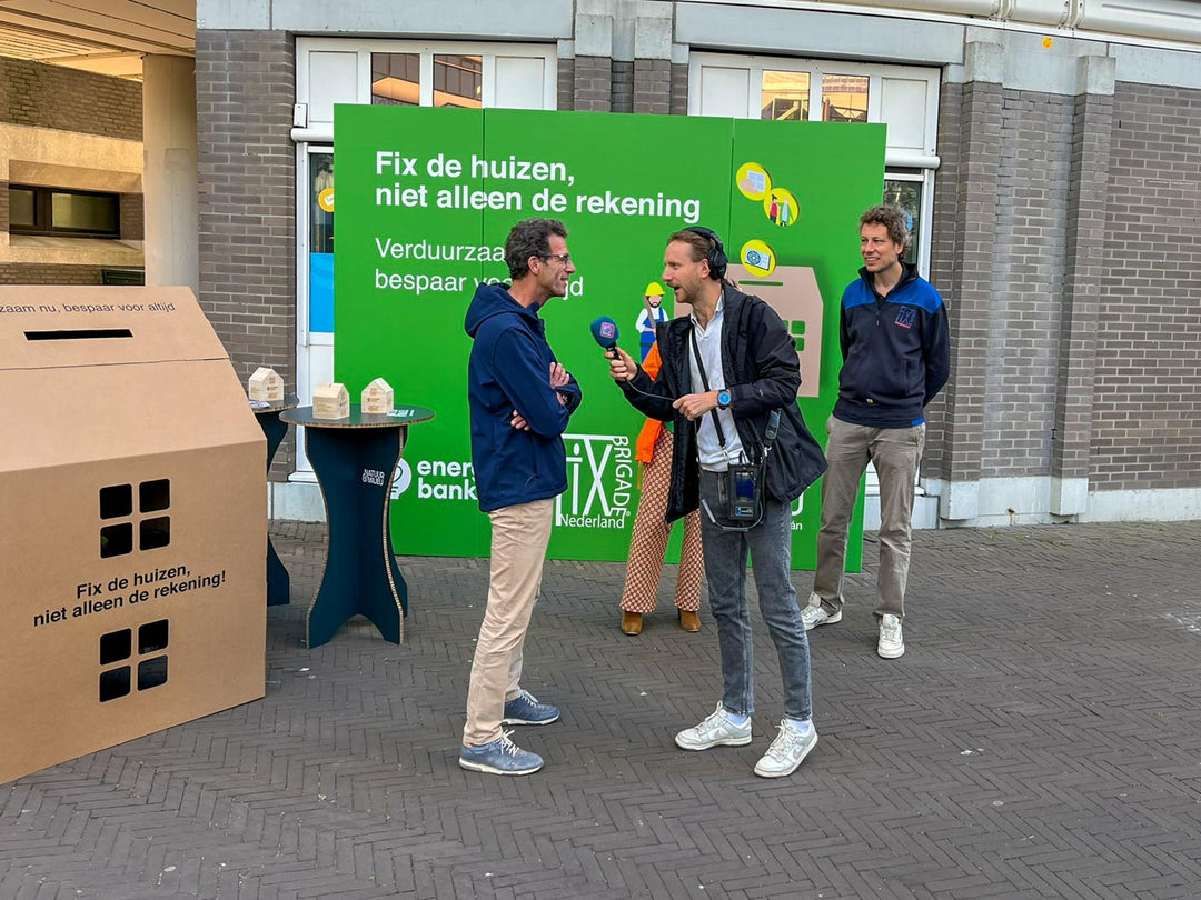 We created the decorations for a sustainability campaign by Natuur & Milieu (Dutch Society for Nature and the Environment) in The Hague. We created a little house, coins with sustainability tips, and a backdrop. We assembled this cardboard decoration in the morning before the campaign began, and dismantled it in the afternoon afterward. The campaign was a great success!
