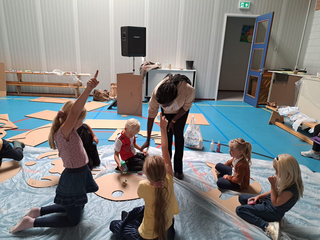Not custom-made, but definitely worth sharing! Laurent from Laurent Styling worked with a large group of children to get creative with our cardboard costumes, and the results are truly impressive. The children let their imaginations run wild, decorating the costumes with paint, paper, glitter, and other craft materials. From colorful robots to cheerful animals and fantasy figures: each costume has its own unique style.