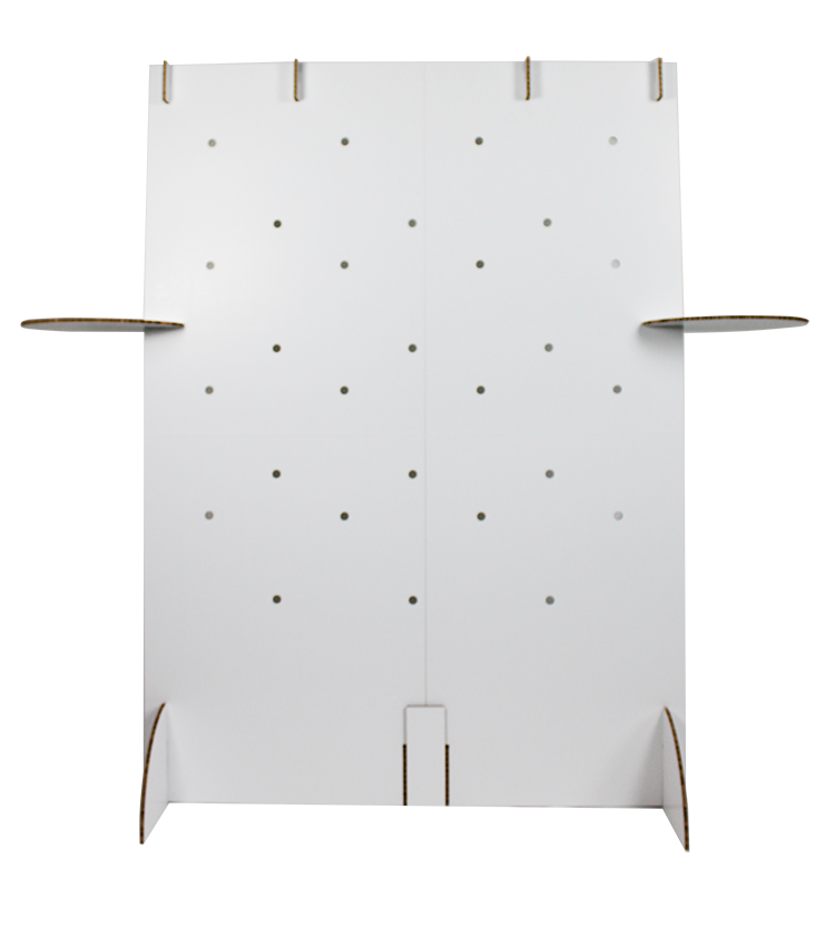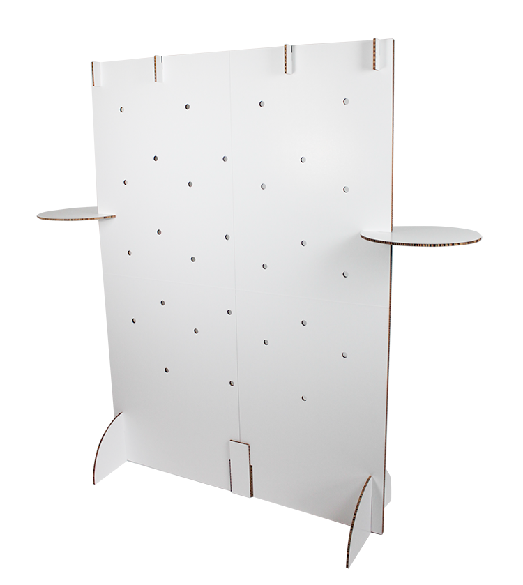 For this, it was important that the wall be foldable. It also had to fit in the car and be quick and easy to install. We equipped the walls with a few cut-and-click components, which made this possible for Tom-Du! The walls also have two side tables and several holes for clothes hangers.