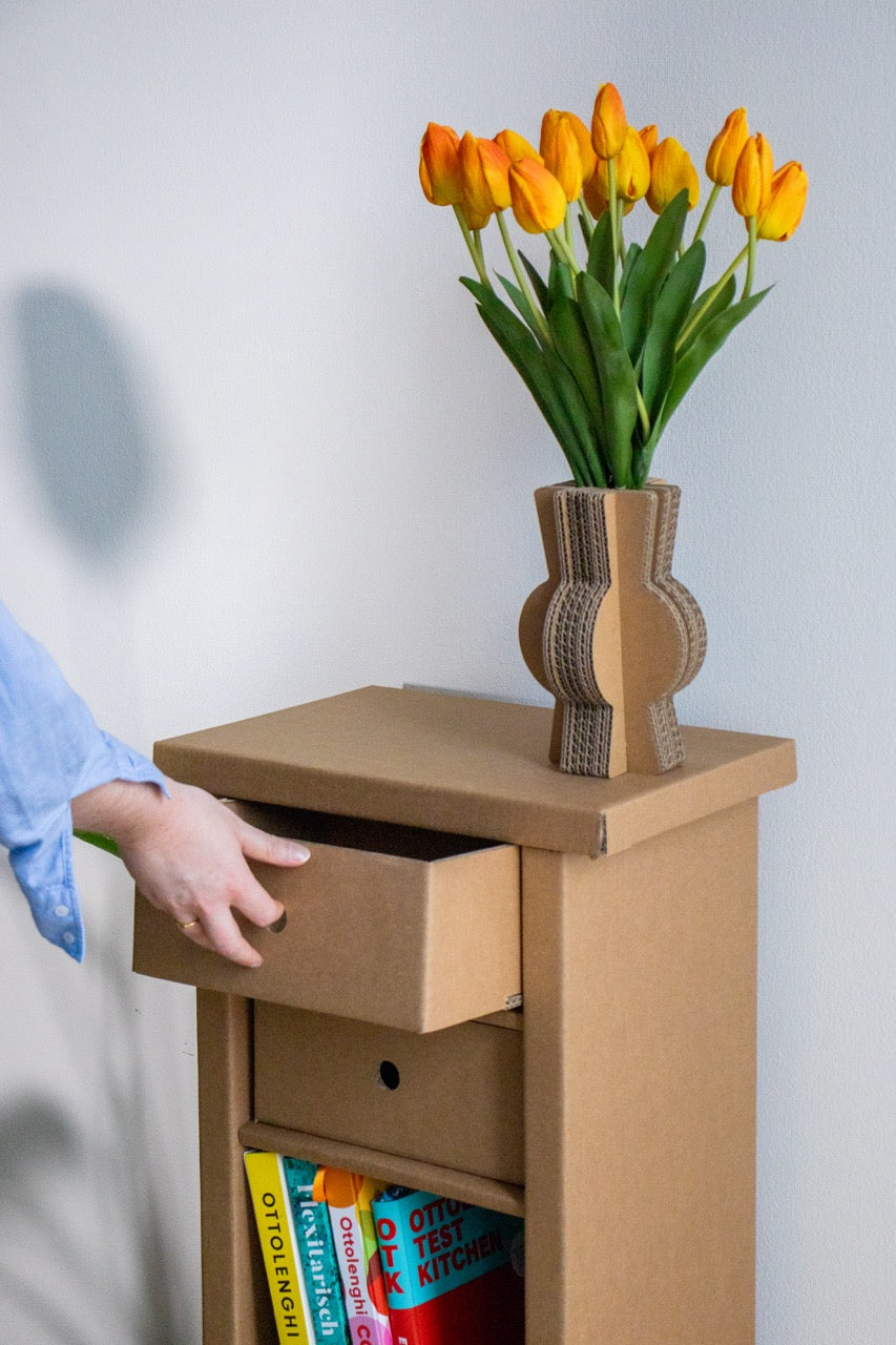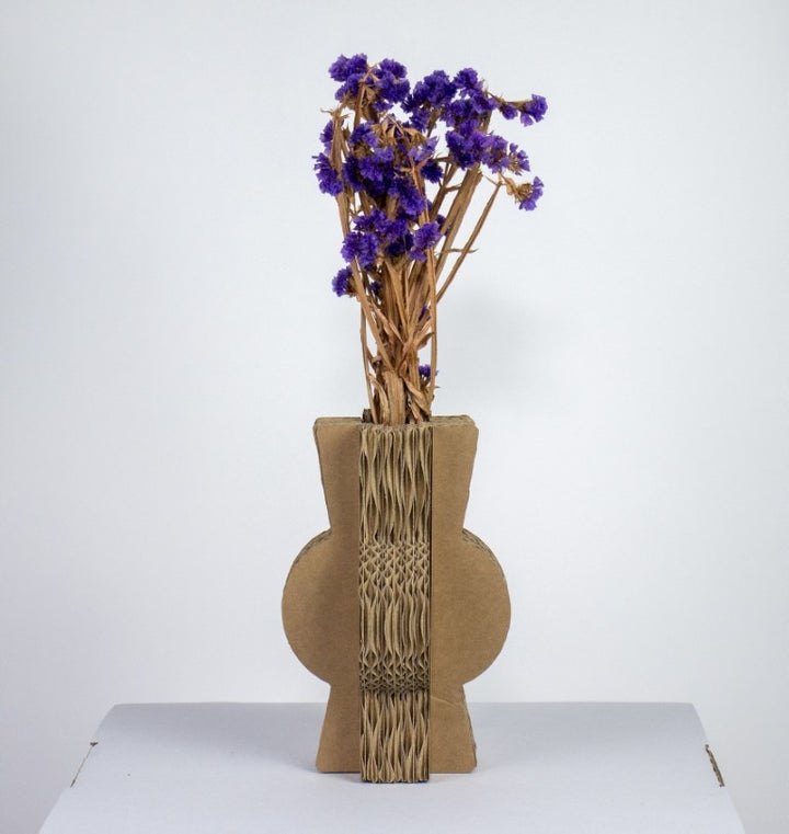 Display the most beautiful dried flowers in this modern vase and decorate your interior. The cardboard vase comes in three versions. The vase is made of cardboard and therefore not suitable for flowers that require water. The vase is delivered as a kit.