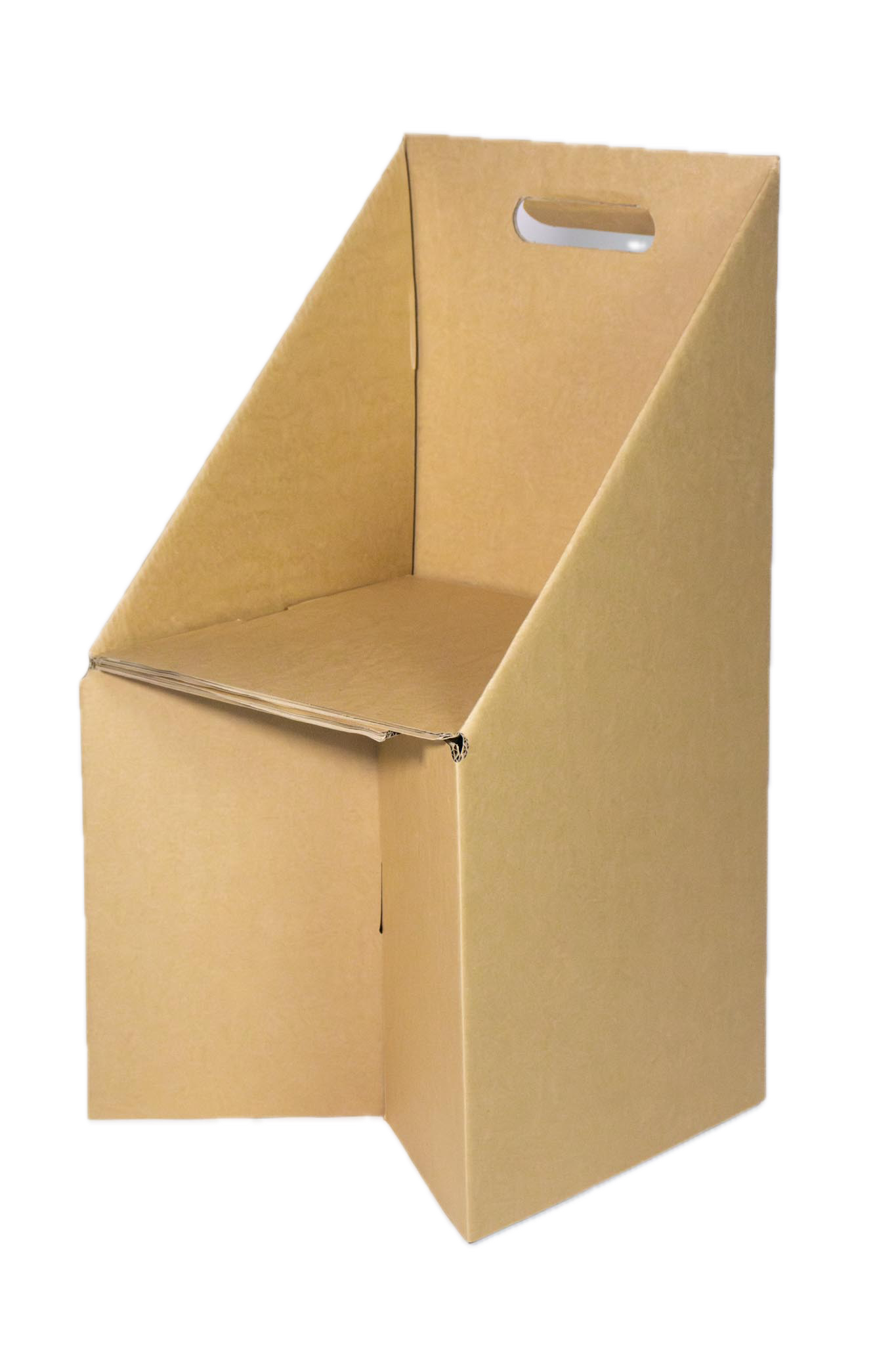 A folding chair made of cardboard. Easy to set up and fold, you can paint or personalize it yourself, and it's 100% recyclable!