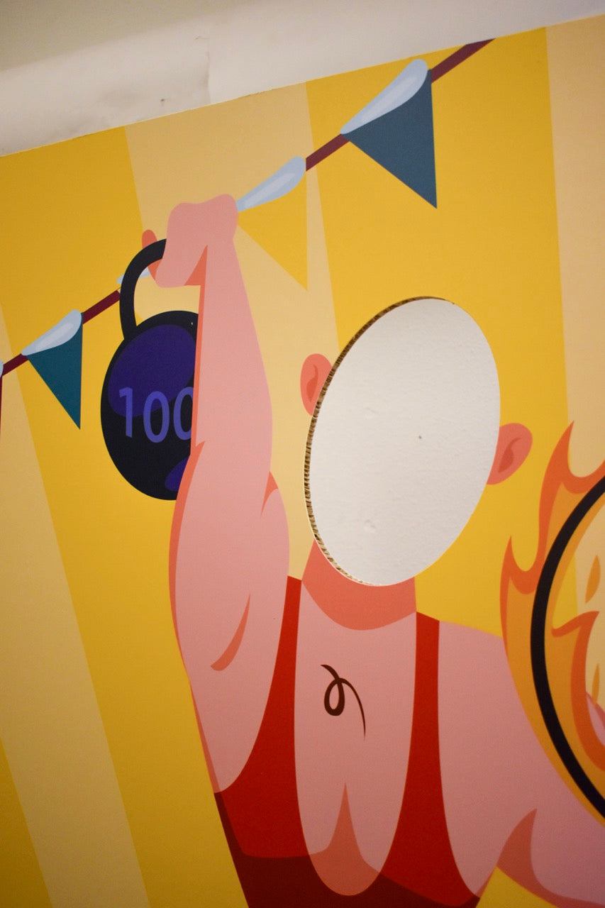A photo board with head cutouts for your party or event. You can personalize the photo wall, and everyone can have their picture taken with it. Capture fun photo memories at your party.