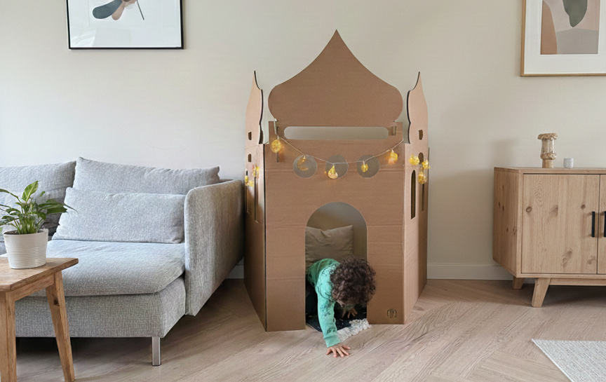 Kartent believes that spending time together is important: Ramadan is such a time of being together. Bring extra atmosphere into your home with our cardboard decorations, such as our cardboard lighting and for children our cardboard Arabian palace wall. Give your decorations a creative twist by decorating them together with paint or glitter and make your Ramadan extra special this year. Also take a look at our other themed products, toys, furniture and home accessories such as lighting, cardboard photo frames and cardboard letters and numbers for decoration. Do you have specific wishes or ideas? Then contact us quickly via our suggestion box. Who knows, your wish may soon be in our webshop!