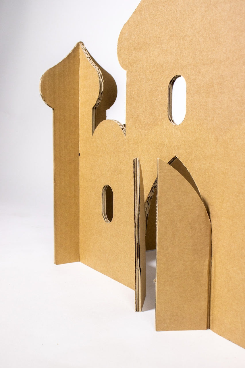 This mini Arabian playhouse is the perfect home for your dolls! Made of sturdy cardboard and with beautiful details of Arabian architecture, it is a beautiful mini mosque where your dolls can feel right at home. This cardboard mosque will provide hours of fun. It is the ideal decor to add a bit of magic to your child's play corner, and fits into any room as a cheerful piece of decor!