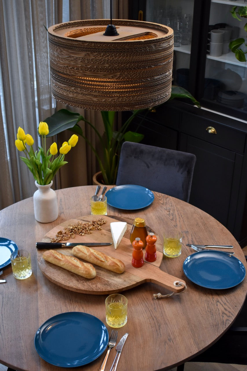 Wij raden aan om een LED lamp te gebruiken. LED verlichting wordt minder warm dan traditionele lampen omdat ze efficiënter gebruik maken van stroom. Zo gaan LED lampen en karton goed samen.